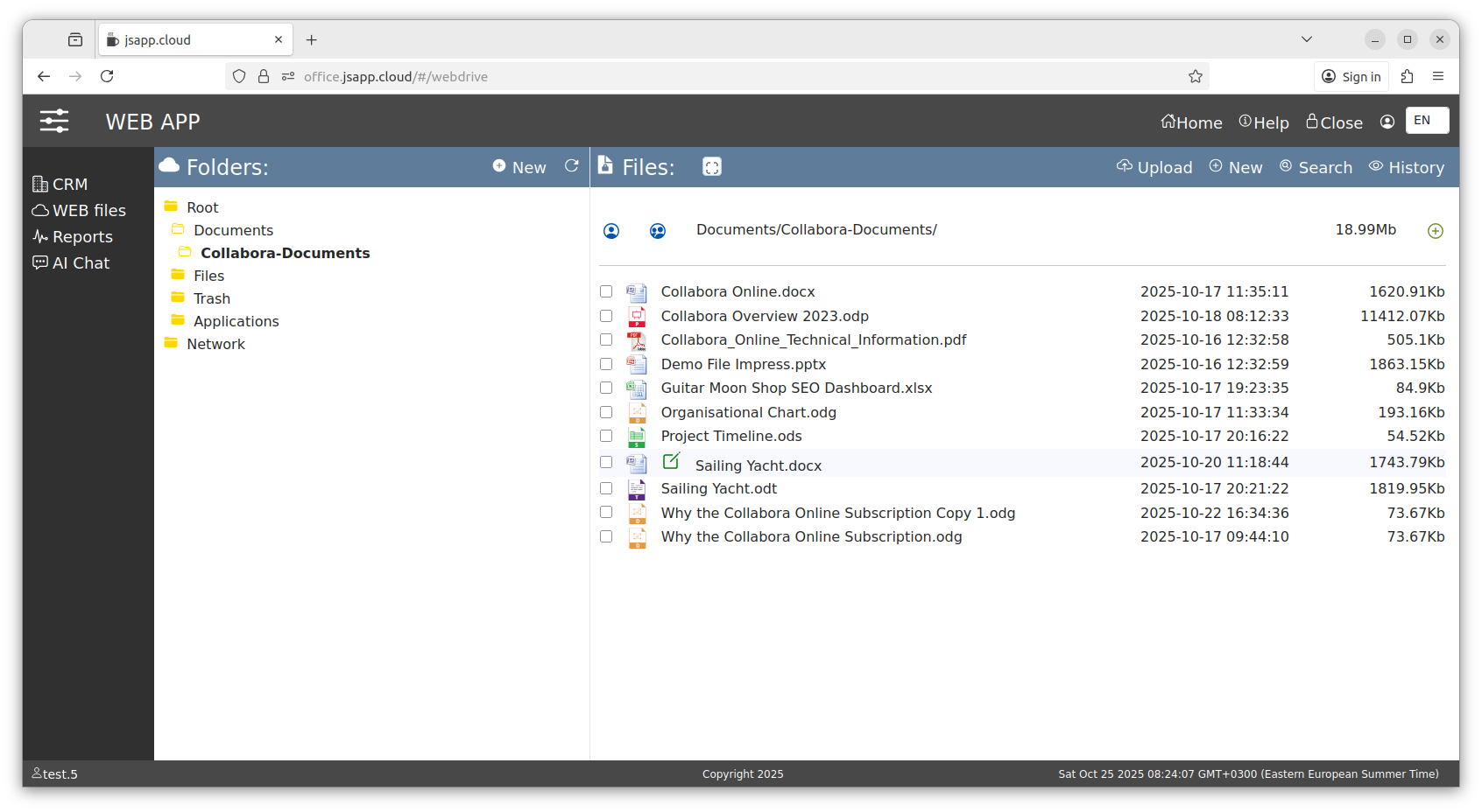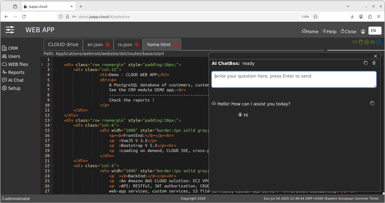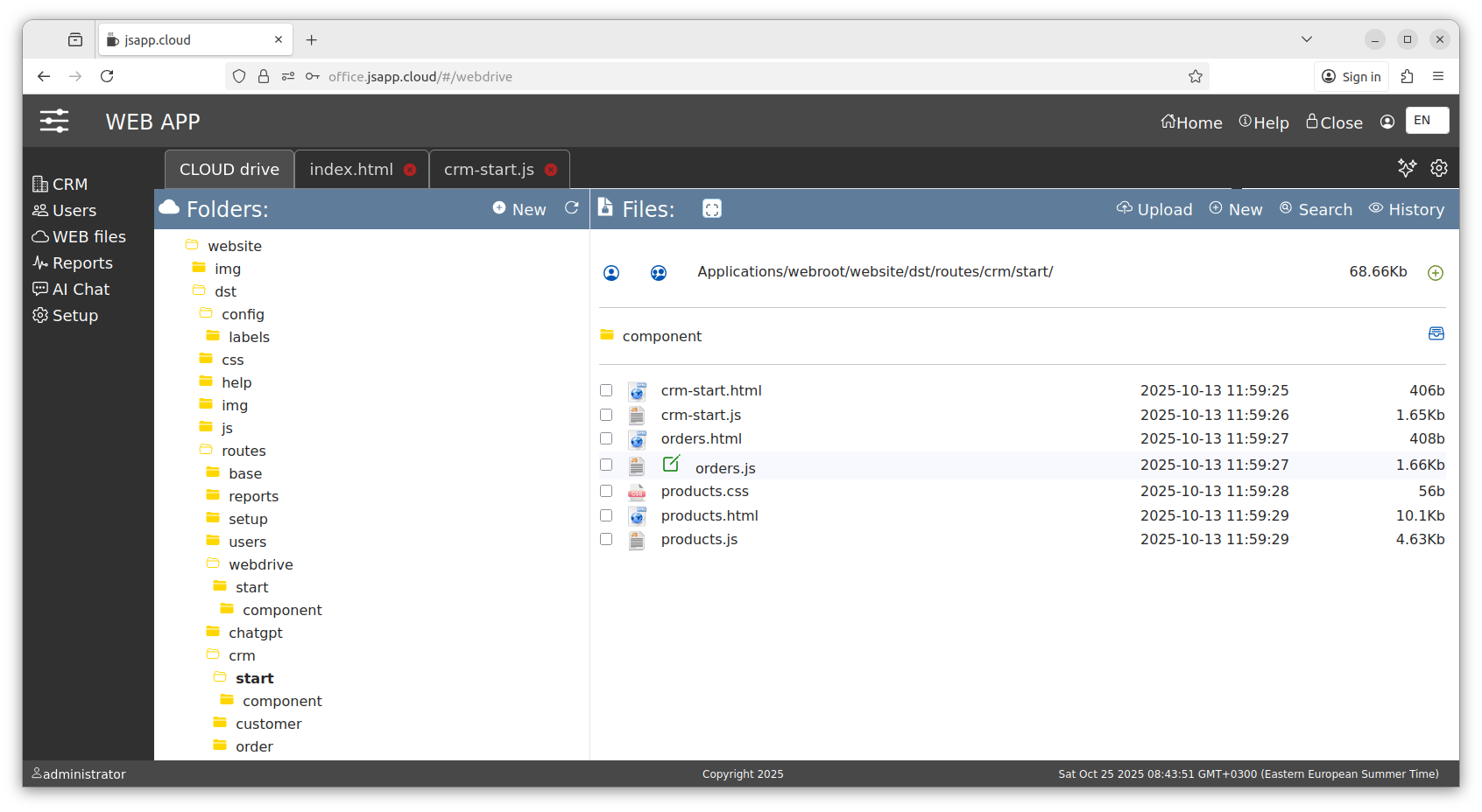 The JSAPP.CLOUD Web Client comes with Users Management, Web Drive and Reports modules.